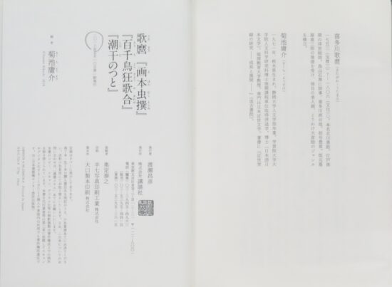浮世絵学 1786-1790c(天明6-寛政2頃)歌麿(うたまろ)/画本虫撰、百千鳥狂歌合、潮干のつと、講談社選書メチエ(菊池庸介・編) 酒井雁高(浮世絵・酒井好古堂)https://www.ukiyo-e.co.jp/116565