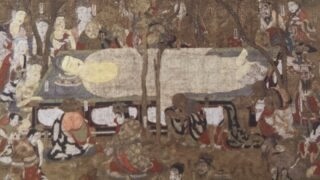 浮世絵学 涅槃図(ねはん)1730s西村孫三良重信画/涅槃図 美濃紙軸装 酒井雁高(浮世絵・酒井好古堂)https://www.ukiyo-e.co.jp/116908