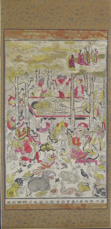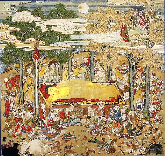 > 浮世絵学 涅槃図(ねはん)1730s西村孫三良重信画/涅槃図 美濃紙軸装 酒井雁高(浮世絵・酒井好古堂)https://www.ukiyo-e.co.jp/116908