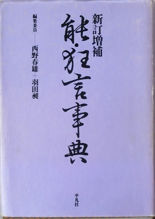 浮世絵学 1987-1999西野春雄(1943- )+羽田昶(1939- )/新訂増補 能・狂言事典、平凡社 酒井雁高(浮世絵・酒井好古堂)https://www.ukiyo-e.co.jp/117745