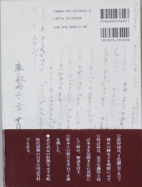 世阿弥(1363c-1443c)自筆能本 影印+校訂 カタカナの能の台本が初めて紹介され、校訂がなされた。