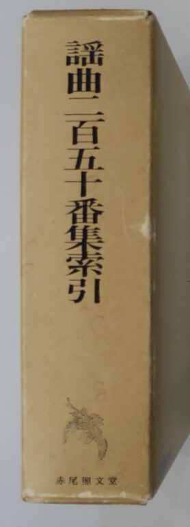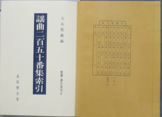 大谷篤蔵(1912-1996)が、謡曲二百五十番を選び、本文十五字前後の詞章に裁断して、総索引を作成した。