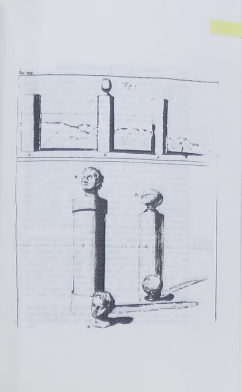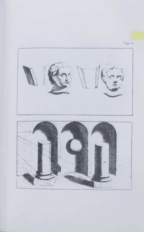 18 p. 銅版画で、立体的な肖像を多面的に捉えて、また円柱、球などを光と影で描いている。