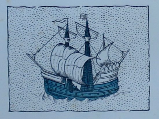 (雁註)二本マストである。船尾は三角帆で、逆風でもジグザクに進むことが出来る。